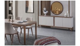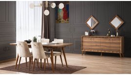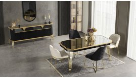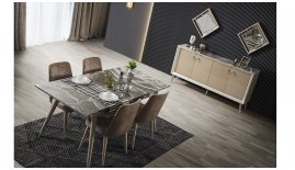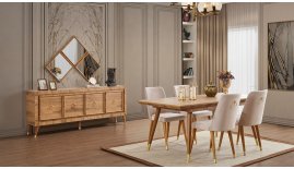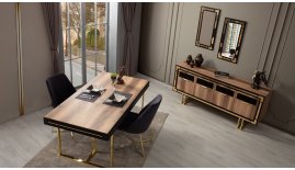 Gold Detaylı Ahşap Yemek Odası Alyans