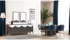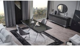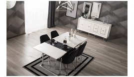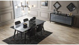 Gümüş Detaylı Siyah Roma Yemek Odası