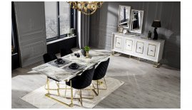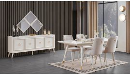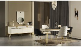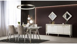 Angel Gold Ayaklı Beyaz Yemek Odası