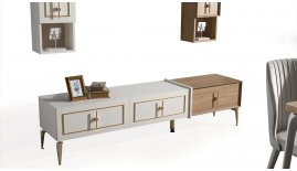 Beyaz Gold detaylı Tv Sehpası Ekol